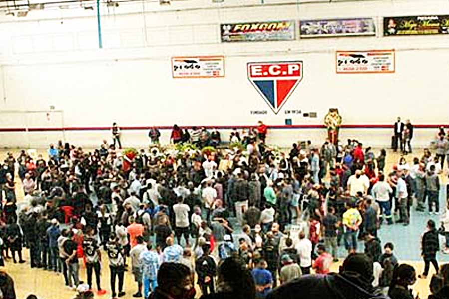 O corpo dele foi velado em um ginásio da cidade lotado por amigos e familiares.