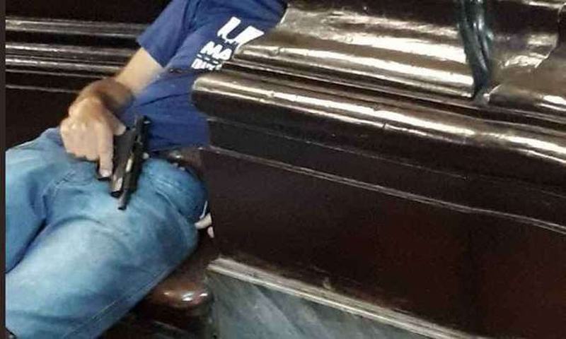 No corpo do autor, foram encontrados um revólver calibre 38 e uma pistola.