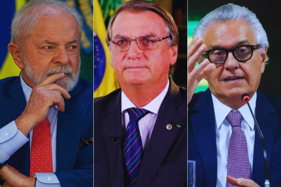 Nos 2 casos, o governador Ronaldo Caiado (União Brasil) aparece em 3º.