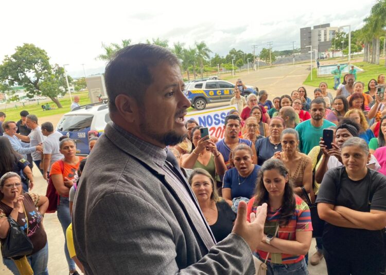 Os servidores administrativos da Educação de Aparecida de Goiânia fizeram uma paralisação em frente ao Centro Administrativo nesta 3ª feira (20).