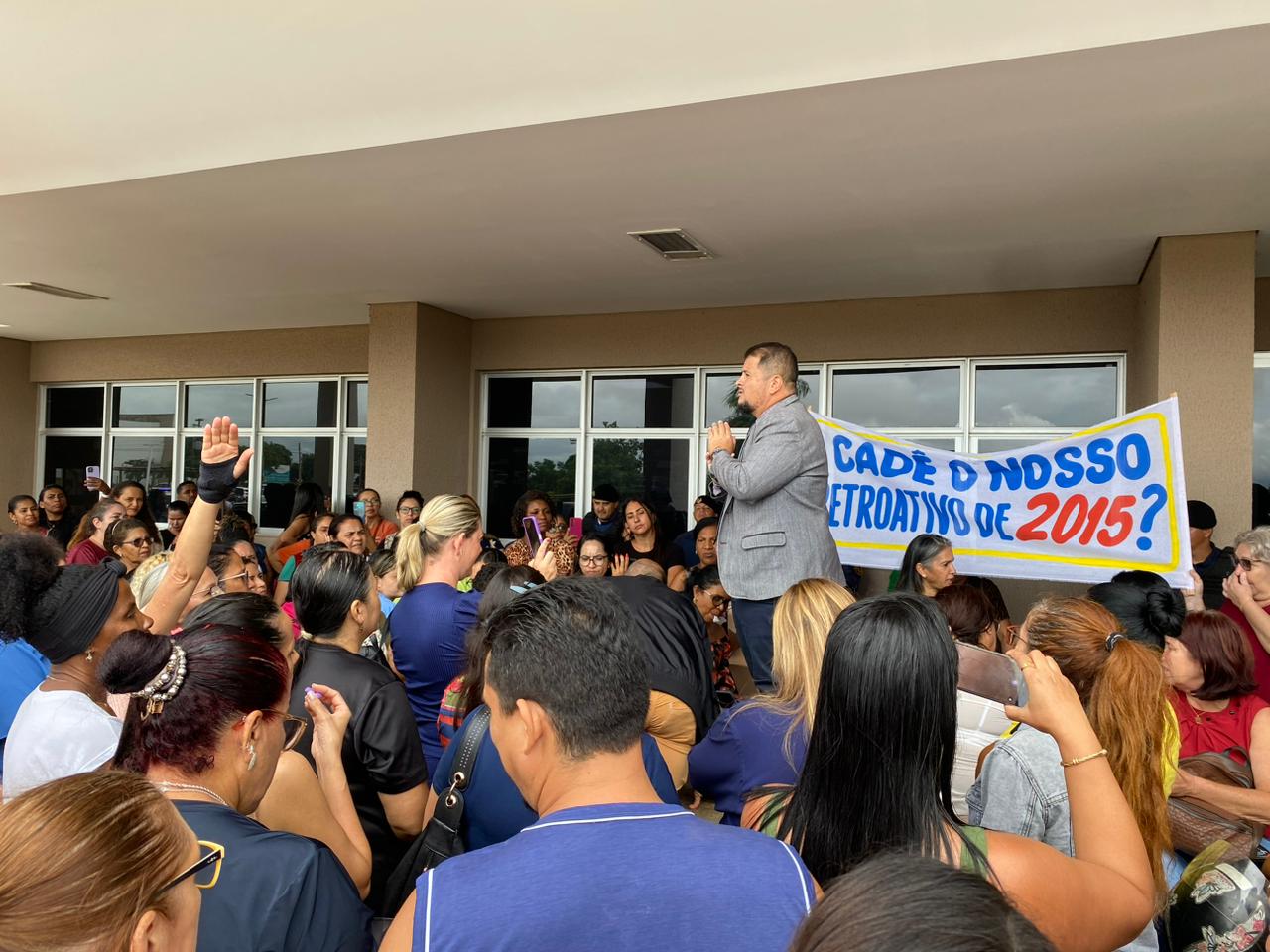 Eles reivindicam pagamento do retroativo de 2015 para profissionais de 10 cargos da Secretaria Municipal de Educação (SME).