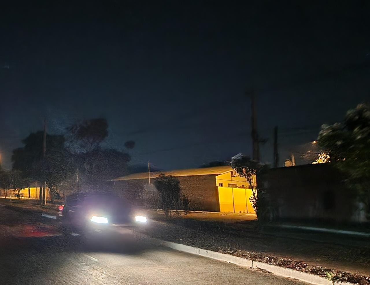 Postes com lâmpadas quebradas e trajeto sem iluminação.