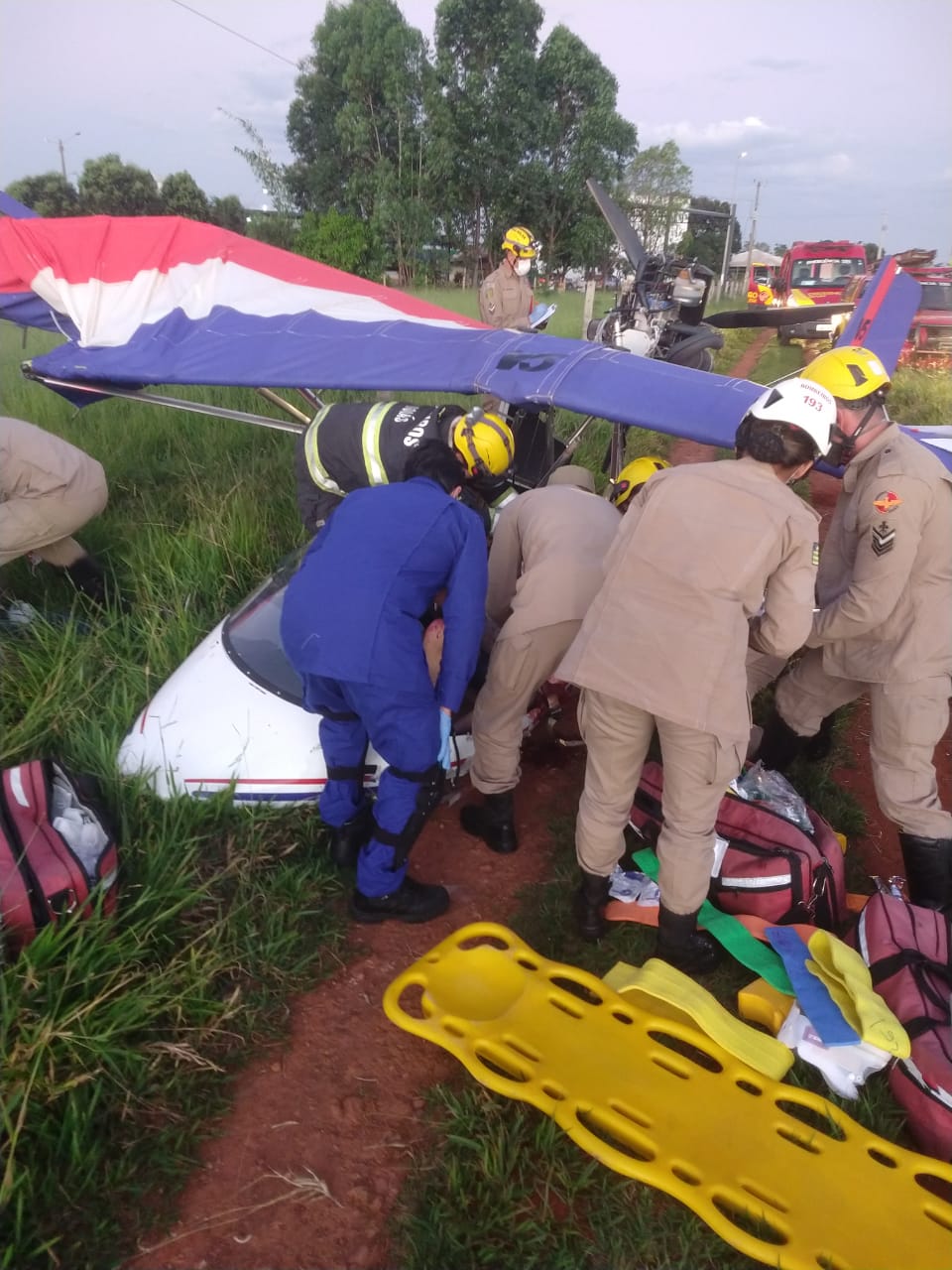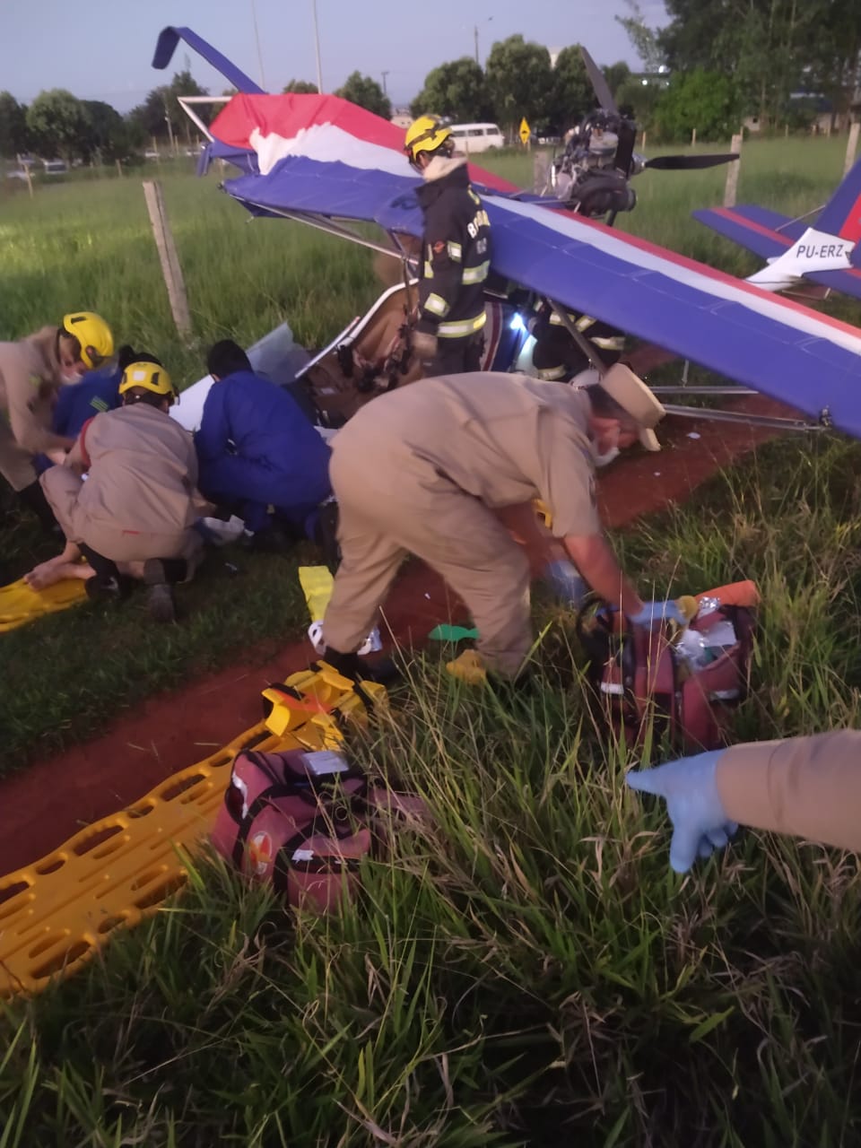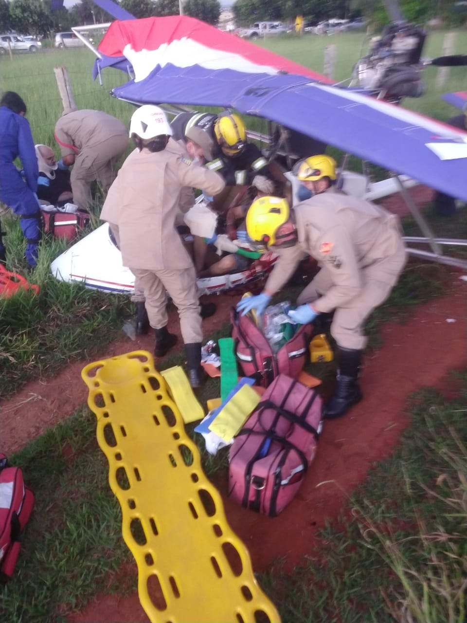 A outra vítima estava dentro da aeronave, presa pelo cinto de segurança, com lesões no rosto.