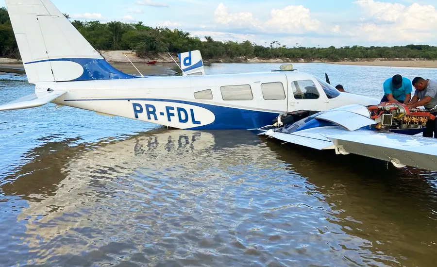 Informações preliminares apontam que o piloto decidiu pousar sobre o rio após uma falha em um dos motores.
