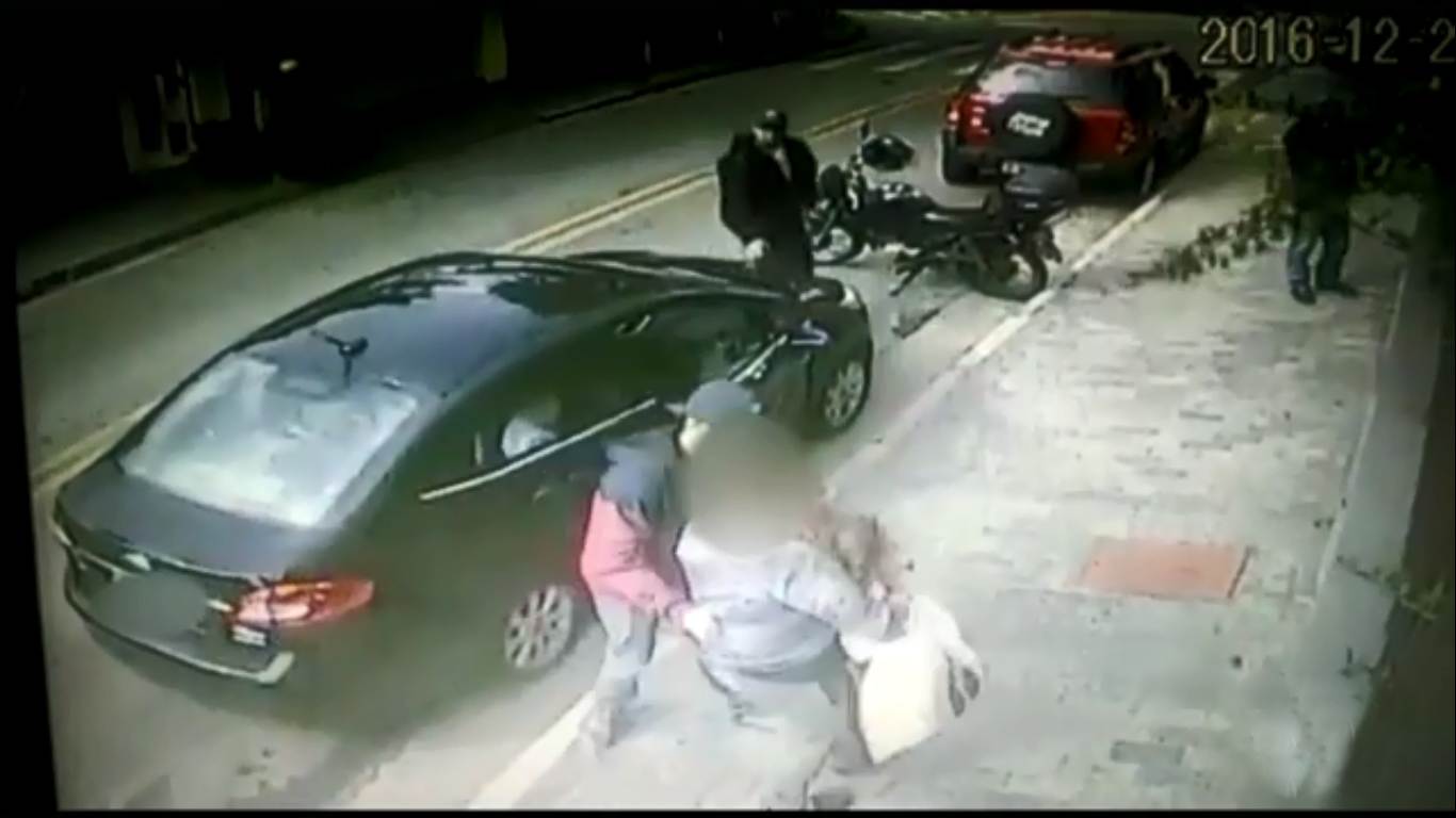 Eram 9h30 e a senhora estava em frente ao apartamento da filha e do genro para buscar os dois netos. Ao sair do portão do prédio, ele é abordada por uma dupla de assaltantes. No carro, esperam uma irmã da mulher e o neto.