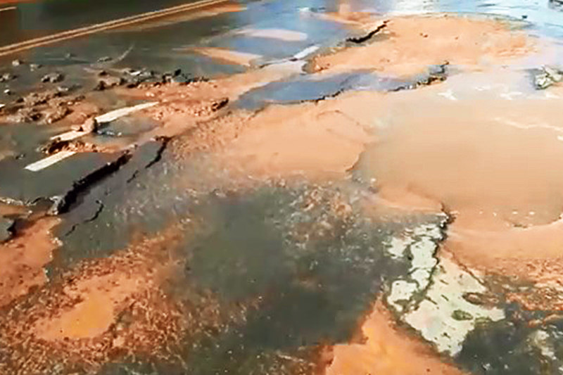 Câmeras de segurança flagraram o momento em que o a adutora se rompeu, às 6h30.
