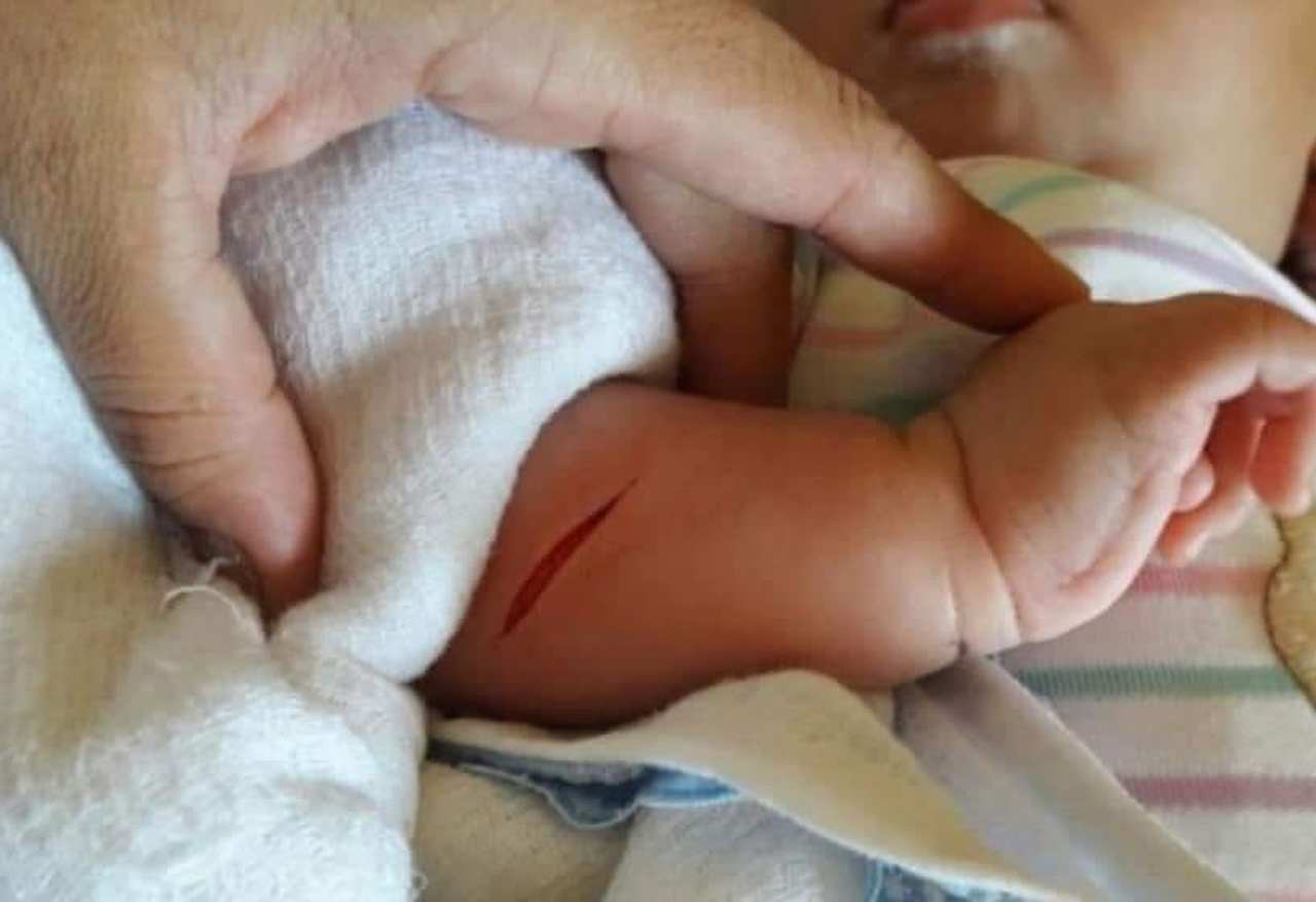 bebê esfaqueado precisou levar quatro pontos no braço direito após ser alvo de assaltante | Foto: Reprodução