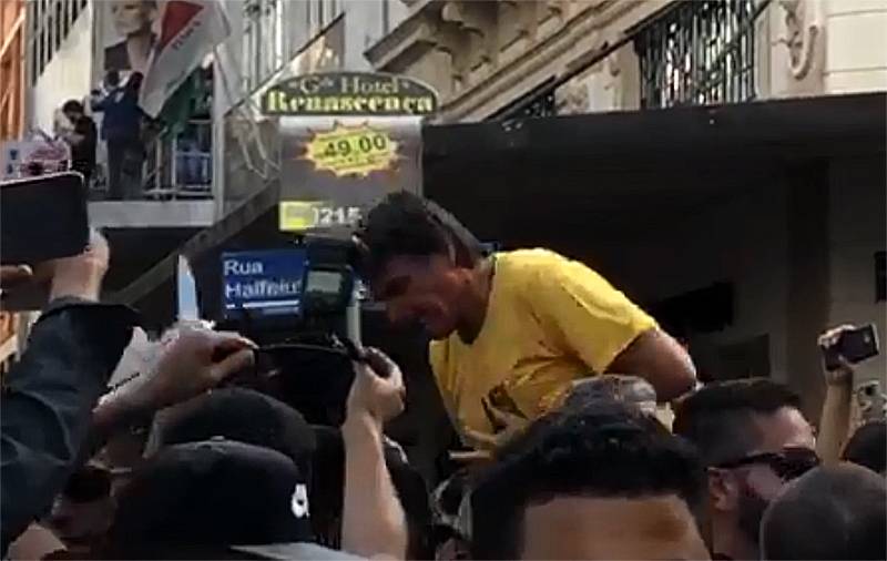 Outro vídeo mostra momentos após a facada, quando o capitão da reserva é carregado por apoiadores.