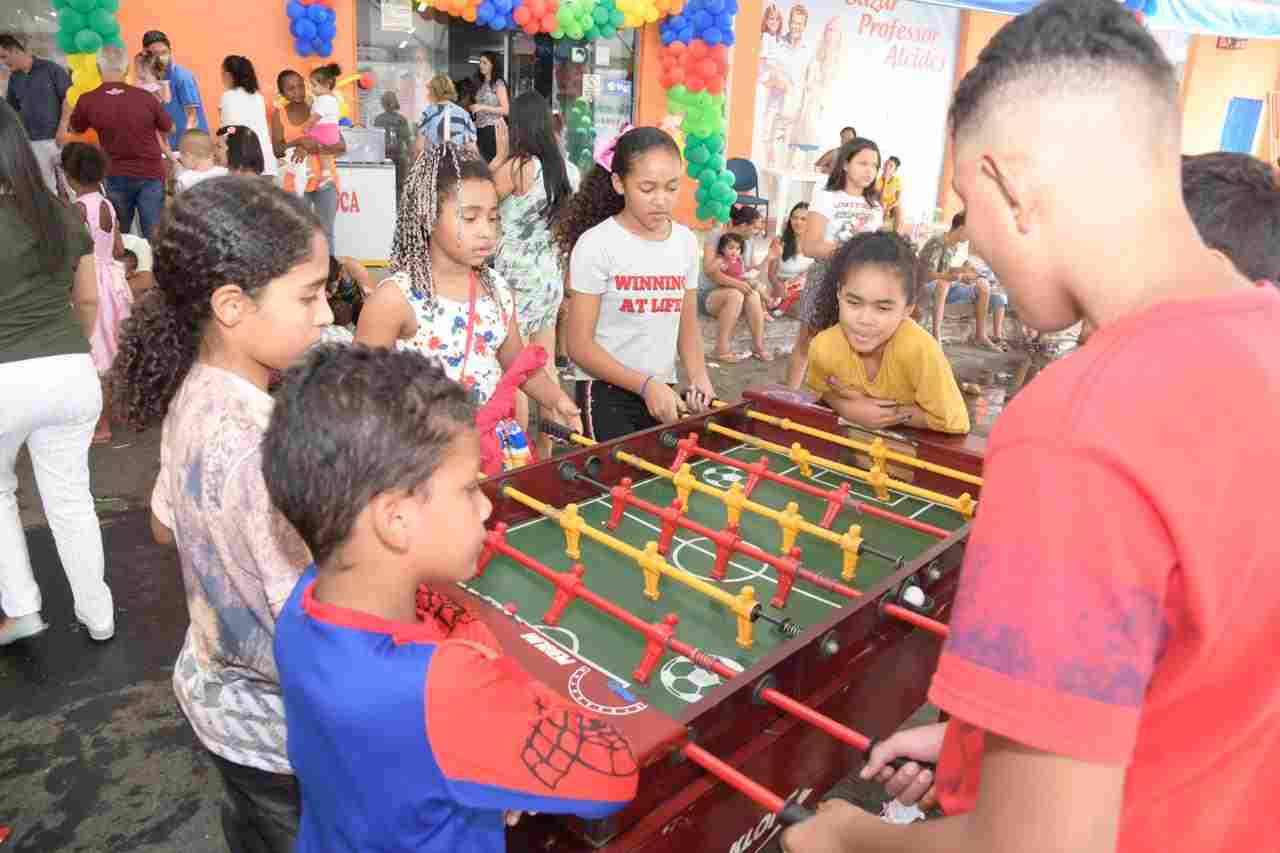 Tudo gratuito para a criançada. Confira fotos da festa: