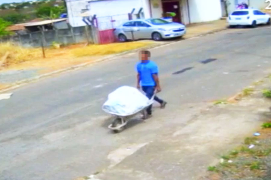Homem foi filmado carregando cadáver em carrinho de mão no Veiga Jardim | Foto: Reprodução