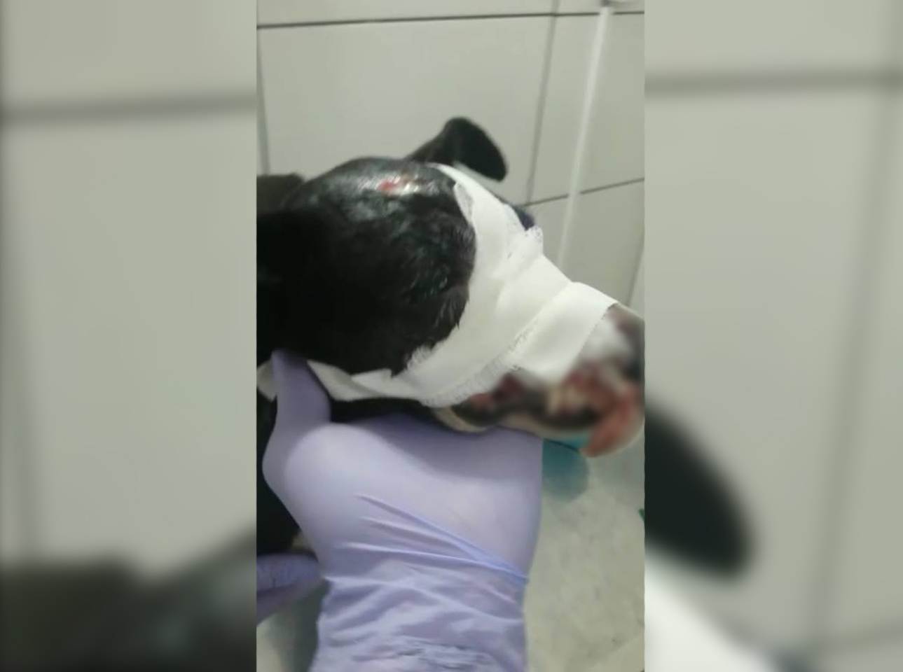 Com a parte direita do rosto completamente mutilada, a cadela foi internada em uma clínica veterinária particular.