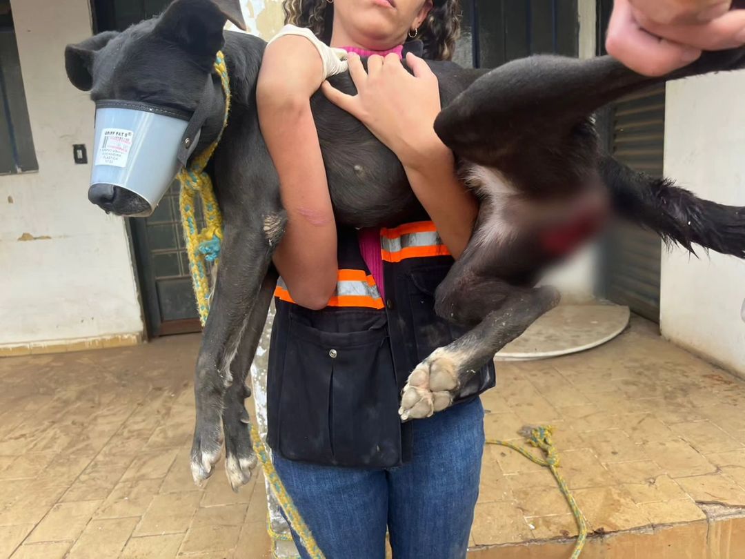 Lá, encontraram a cadela bastante debilitada e com grave ferimentos na região da vagina.