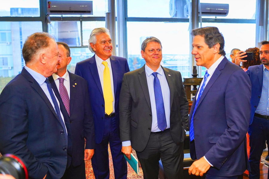 O governador Ronaldo Caiado e outros 7 se reuniram nessa 3ª feira (7) para discutir sobre formas de repor perdas de arrecadação com o ICMS com o ministro da Fazenda, Fernando Haddad, e os ministros do Supremo Tribunal Federal (STF) Luís Roberto Barroso e Gilmar Mendes, em Brasília.