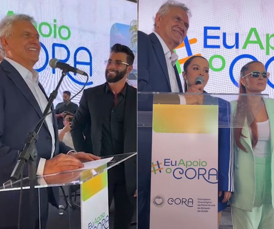 O governador Ronaldo Caiado, o cantor Gusttavo Lima e a dupla Maiara & Maraísa fizeram uma vistoria técnica às obras do Complexo Oncológico de Referência do Estado de Goiás (Cora) nesta 4ª feira (29).