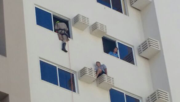 De acordo com os bombeiros, o homem deixou o celular cair pela janela e o objeto parou sobre a parte externa do ar condicionado do apartamento, que fica no 9º andar do prédio. Ao tentar resgatar o telefone, o homem acabou caindo no mesmo local e ficou ilhado.