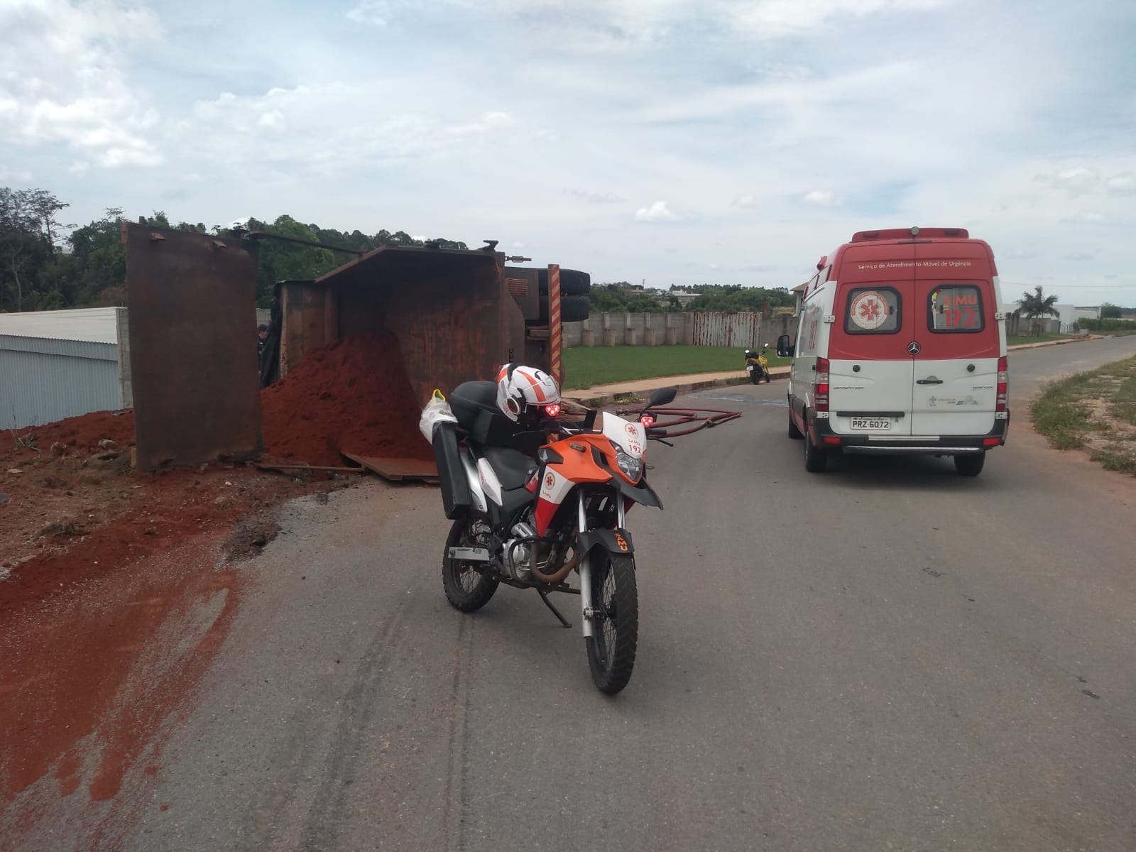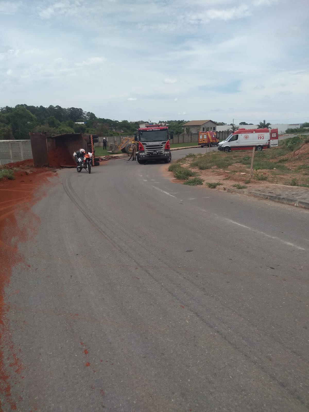 Na tarde do último sábado (16), um caminhão capotou no Parque Industrial, em Aparecida de Goiânia.