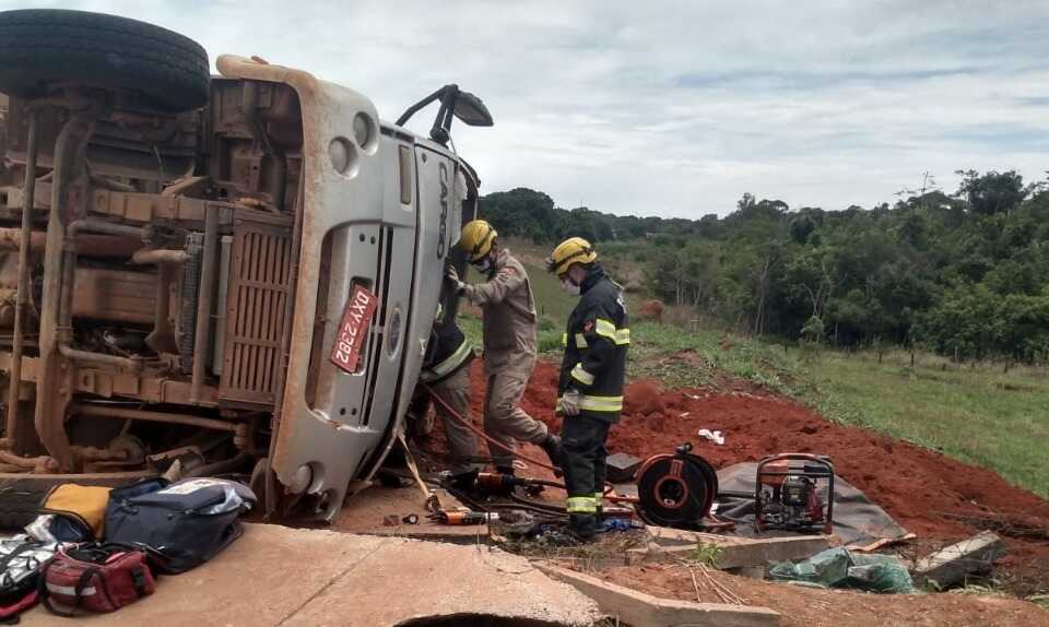O caminhoneiro estava consciente, porém com leve confusão mental e escoriações pelo corpo.