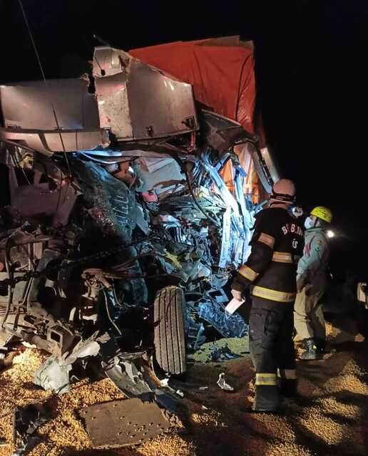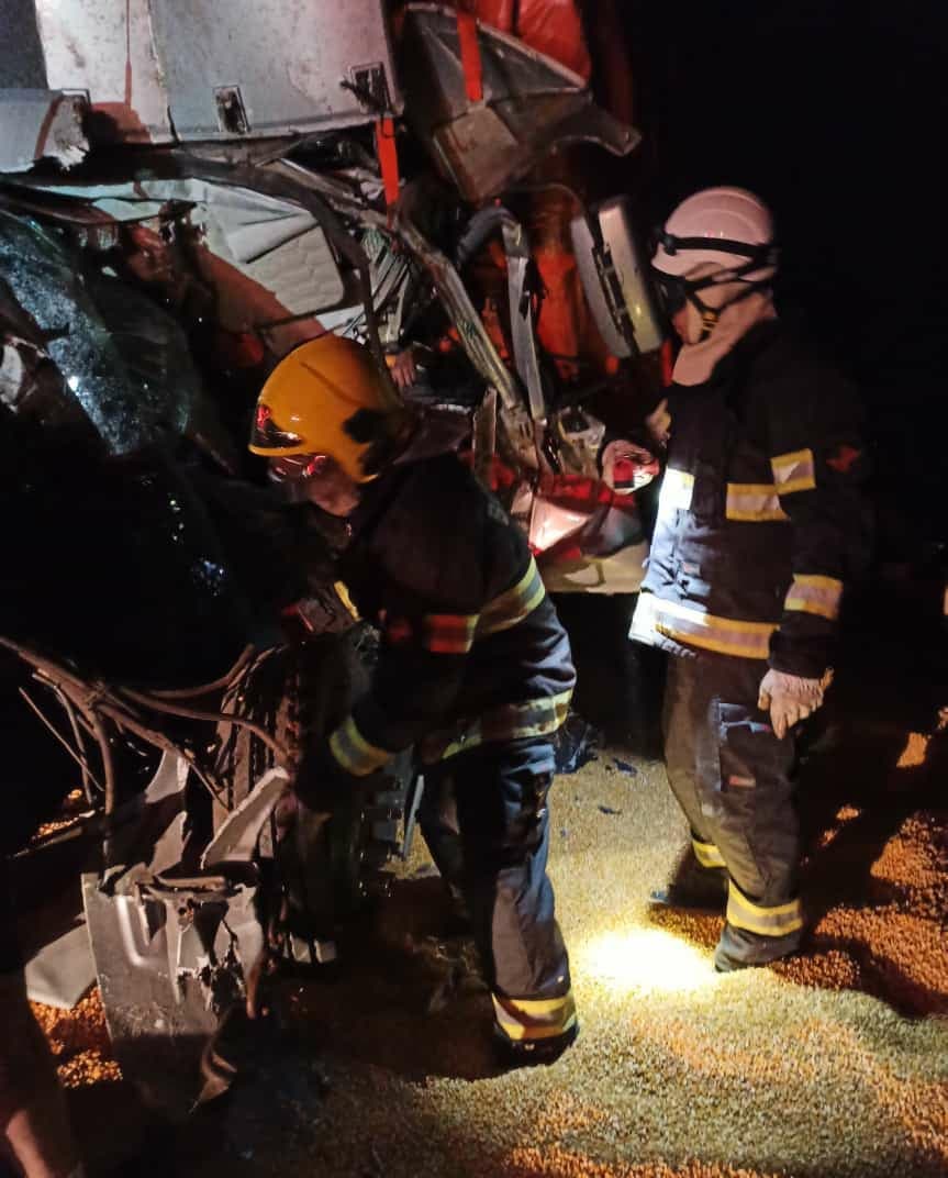 De acordo com o Corpo de Bombeiros Militar, 2 caminhões colidiram na rodovia.