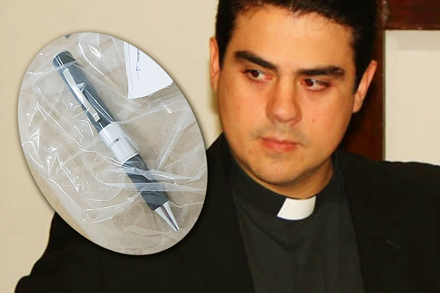 O Ministério Público de Goiás (MP-GO) apresentou nessa 5ª feira (10) uma caneta espiã apreendida no alojamento do padre Robson de Oliveira, investigado por suspeitas de desvios de recursos da Associação Filhos do Pai Eterno (Afipe), em Trindade.