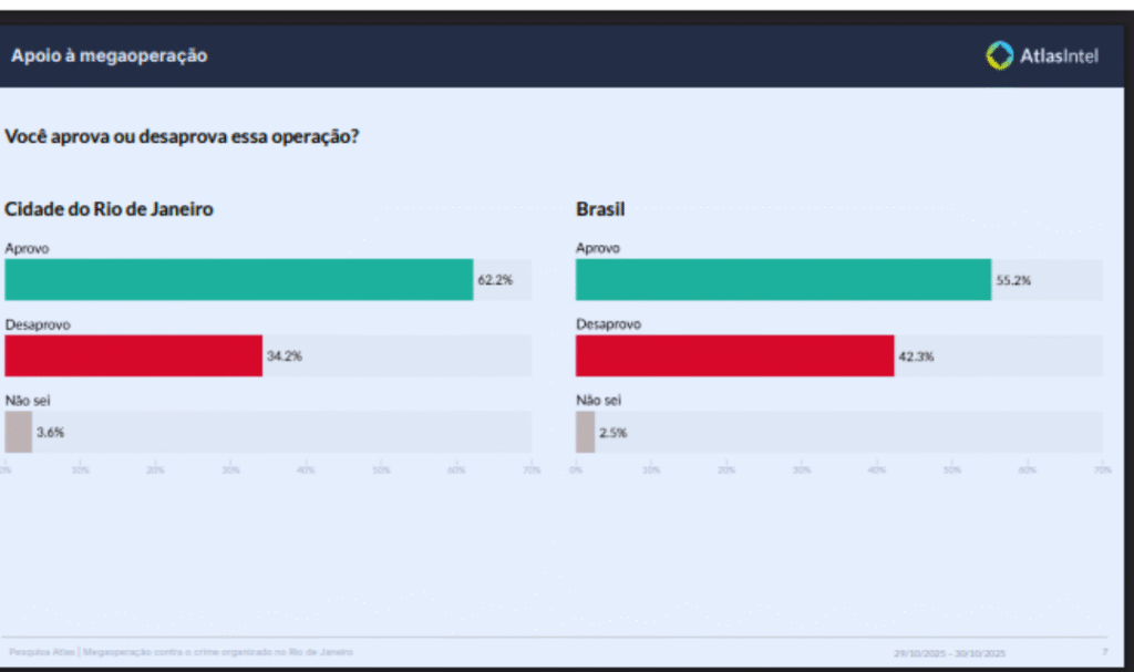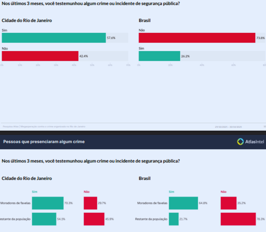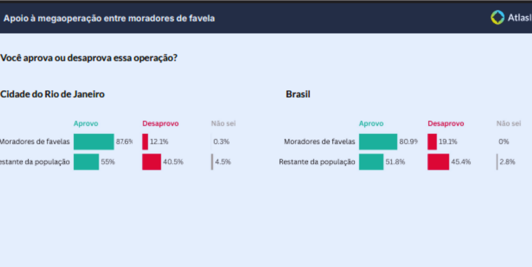 Seis a cada 10 cariocas apoiam a megaoperação da Polícia Militar (PMRJ) contra membros do Comando Vermelho nas comunidades da Penha e do Alemão, realizada na última 3ª feira (28).
