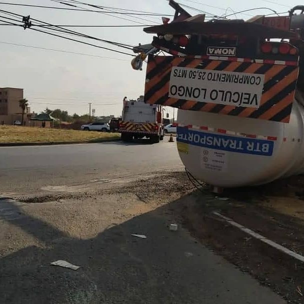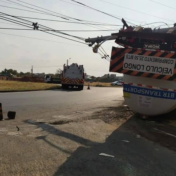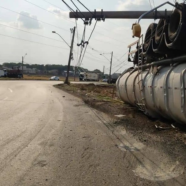 Carreta bitrem capota e atinge rede de alta tensão em Aparecida
