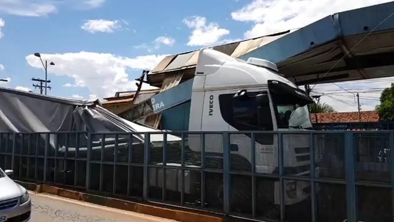 Uma carreta se envolveu em um acidente ao invadir uma plataforma de ônibus do Eixo Anhanguera em Goiânia na tarde desta terça-feira, 5.