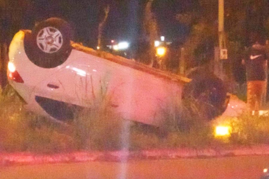 De acordo com testemunhas, o motorista do veículo perdeu o controle da direção e capotou na pista.