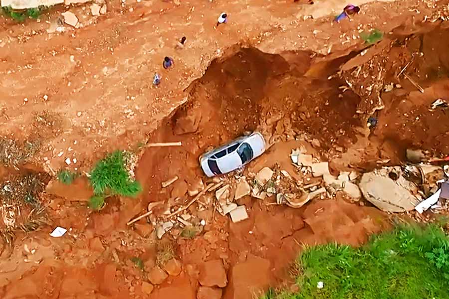 De imediato, máquinas trabalham na tarde desta 5ª feira para desviar o curso da água da chuva e controlar a cratera.