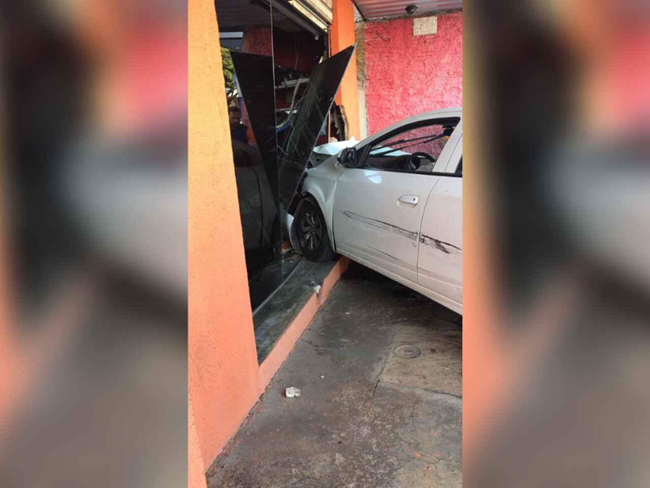Carro desgovernado invade loja no Garavelo, em Aparecida