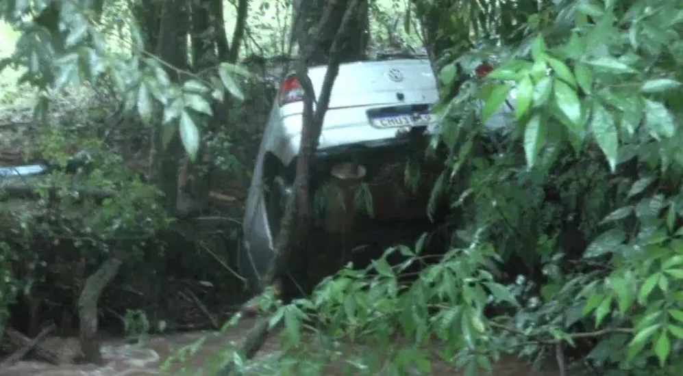 Horas depois, o veículo foi encontrado pelo Corpo de Bombeiros preso entre árvores.