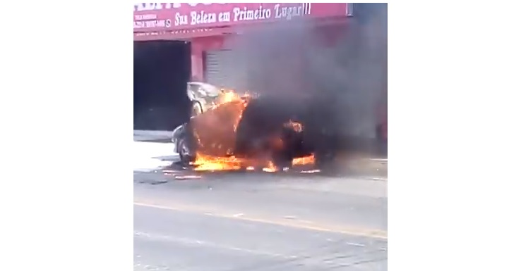 Um carro pegou na tarde desse domingo, 11, na Avenida Igualdade, quase em frente ao Supermercado Tatico do Garavelo, em Aparecida de Goiânia.