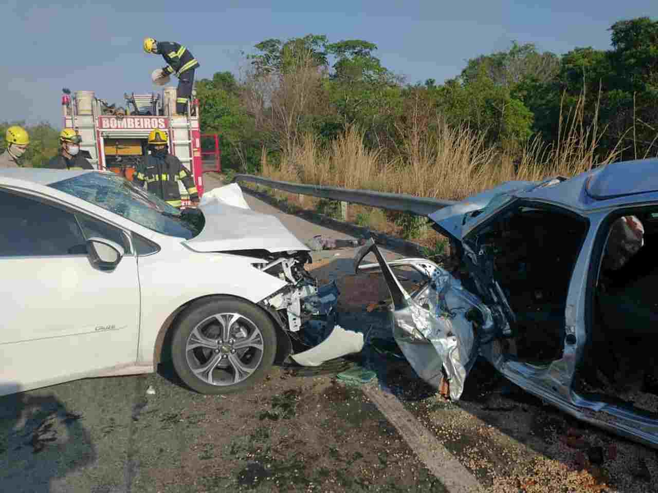 Uma colisão frontal entre 2 carros na BR-153, em Porangatu (GO), deixou 3 pessoas gravemente feridas na manhã desta 5ª feira (24).