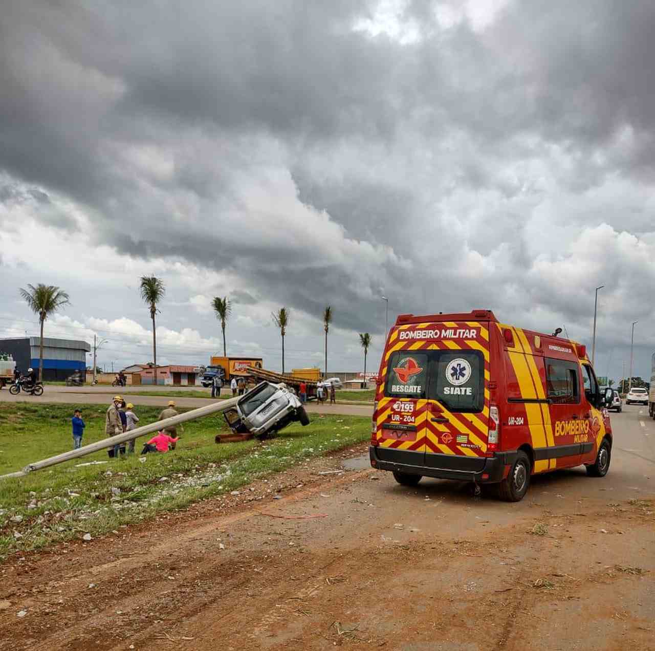 Segundo o Corpo de Bombeiros, o veículo bateu em 1 caminhão antes de colidir contra o poste de iluminação.