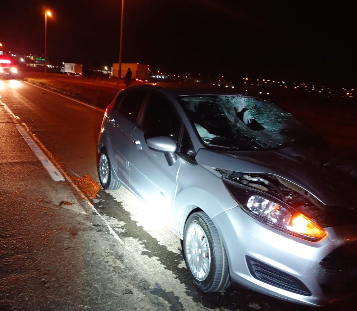 Com o impacto, o corpo da vítima foi arremessado no para-brisa do veículo.