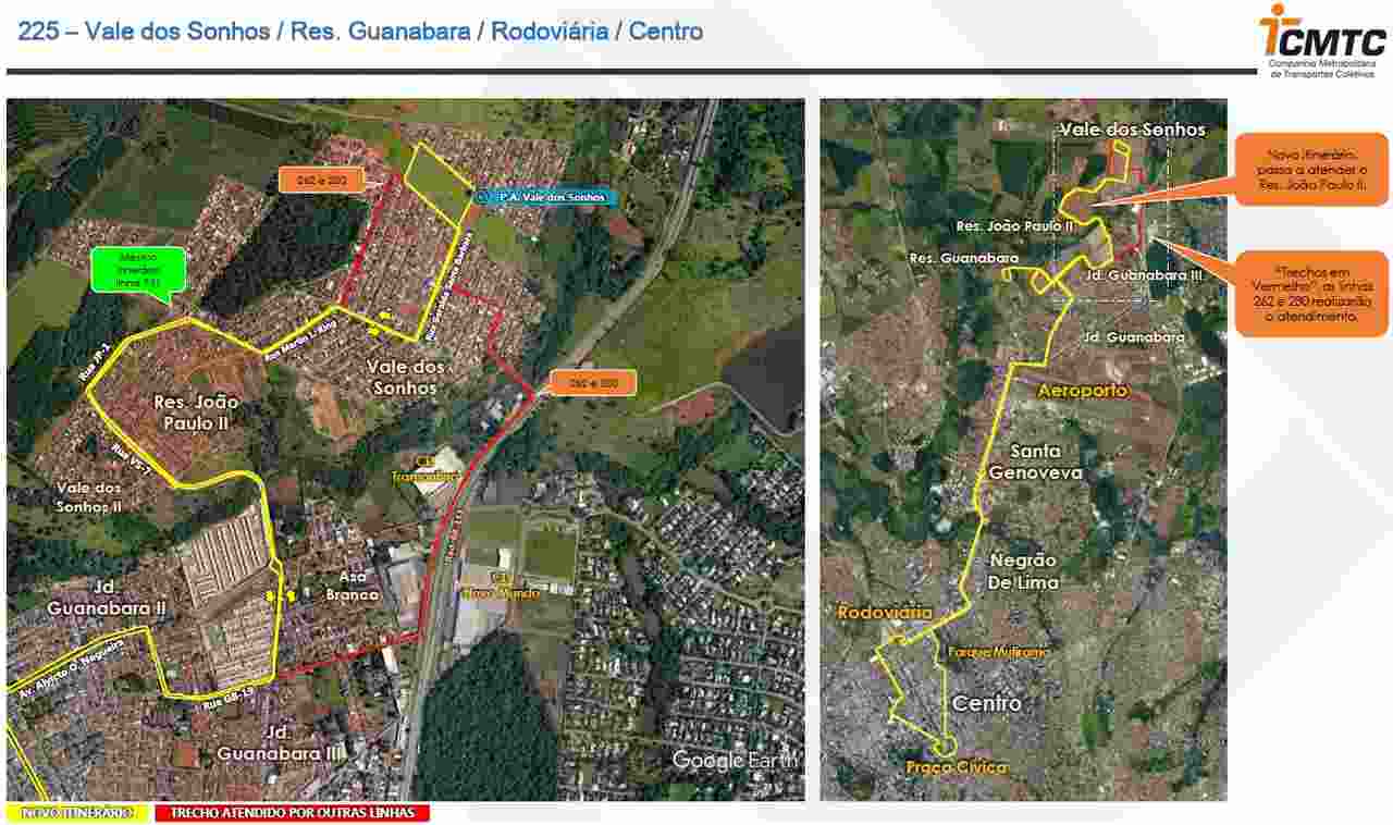 Novo itinerário da linha 225, em Goiânia | Foto: Divulgação/CMTC