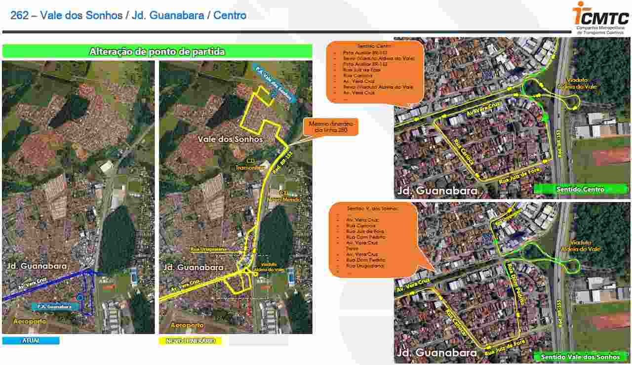 A linha 262 – Vale dos Sonhos / Jd. Guanabara / Centro agora terá o ponto de origem modificado, com a saída dos ônibus do Vale dos Sonhos.
