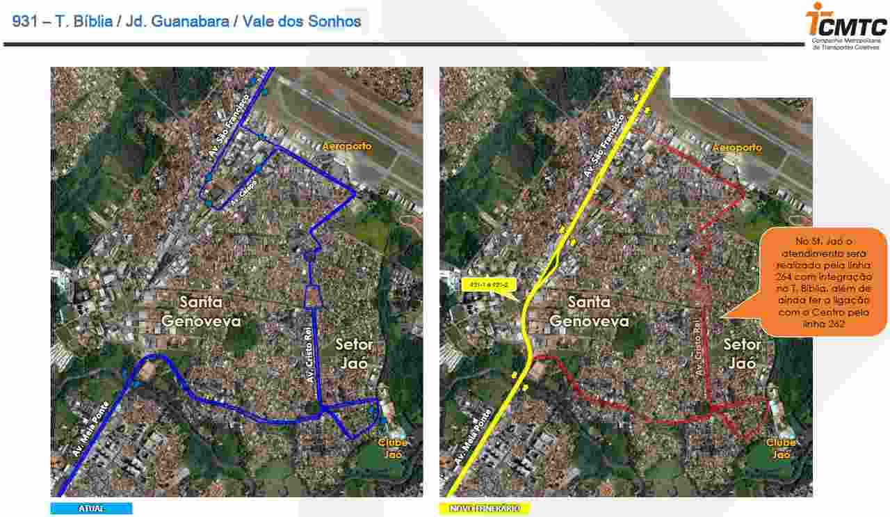 Ainda para o setor Jaó temos, haverá mudanças nas linhas 264 – T. Bíblia / St. Jaó / Sta. Genoveva e para a 931 T. Bíblia / Jd. Guanabara / Vale dos Sonhos.
