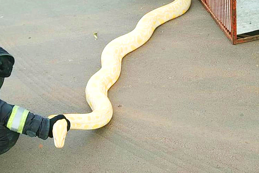 Uma cobra píton albina, com mais de 2 metros, foi capturada pelo Corpo de Bombeiros Militares (CBMGO), no final da tarde desta 5ª feira (10).