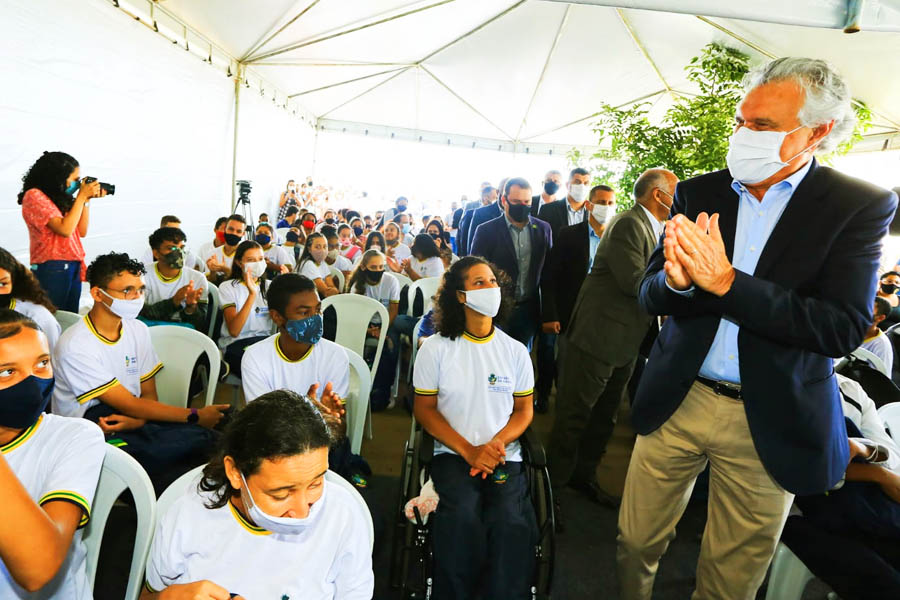 O governador Ronaldo Caiado assinou nesta 2ª feira (14) ordem de serviço para a construção de um colégio no Residencial Jardins do Cerrado 9, em Goiânia.