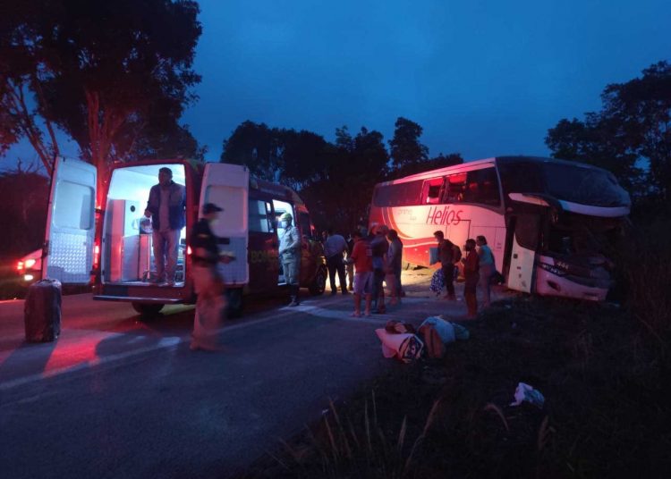 Uma grave colisão entre uma carreta e ônibus deixou 5 pessoas feridas.