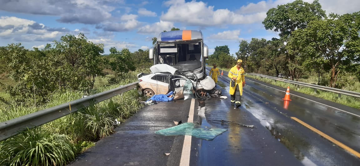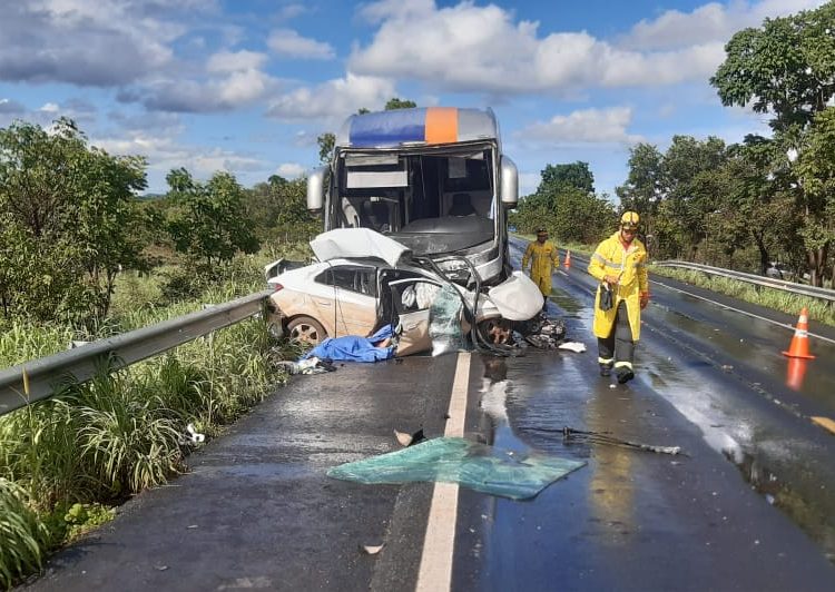 Uma colisão entre ônibus e um carro de passeio matou 5 pessoas e outros 5 ficaram feridas.