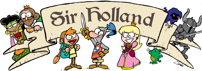 Sandro Zambi – Bom, em meados de 1999 a 2000, eu estava lendo bastante Asterix e Lucky Luke, ambos com roteiros do mestre Goscinny, e bateu a vontade de ter um personagem cômico em cenário histórico. Mas como não era um entendido de história, apenas gostava do assunto, e jogava RPG todo final de semana, pensei em puxar para a fantasia medieval, e imediatamente a memória me recordou do filme Monty Phyton – Em Busca do Cálice Sagrado (esse grupo, Monty Phyton’s Flying Circus, eram de um programa de TV de mesmo nome da Inglaterra, que era exibido na década de 1970. Eram, praticamente, os “Trapalhões” da Inglaterra). A partir daí, a imagem de um dos cavaleiros desse filme ficou marcado na minha mente, e umas alterações num rascunho inicial formaram a imagem de Sir Holland. O nome veio por ser o primeiro que apareceu… Desenhei apenas uma história de seis paginas com Holland e acabei esquecendo ele na gaveta.
