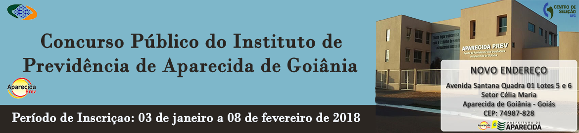 Os candidatos inscritos no concurso público do Instituto de Previdência de Aparecida de Goiânia passarão por uma prova objetiva eliminatória e classificatória, do tipo múltipla escolha com quatro alternativas (A, B, C, D). O exame será aplicado no dia 11/03/18, data em que também serão divulgados os gabaritos preliminares.