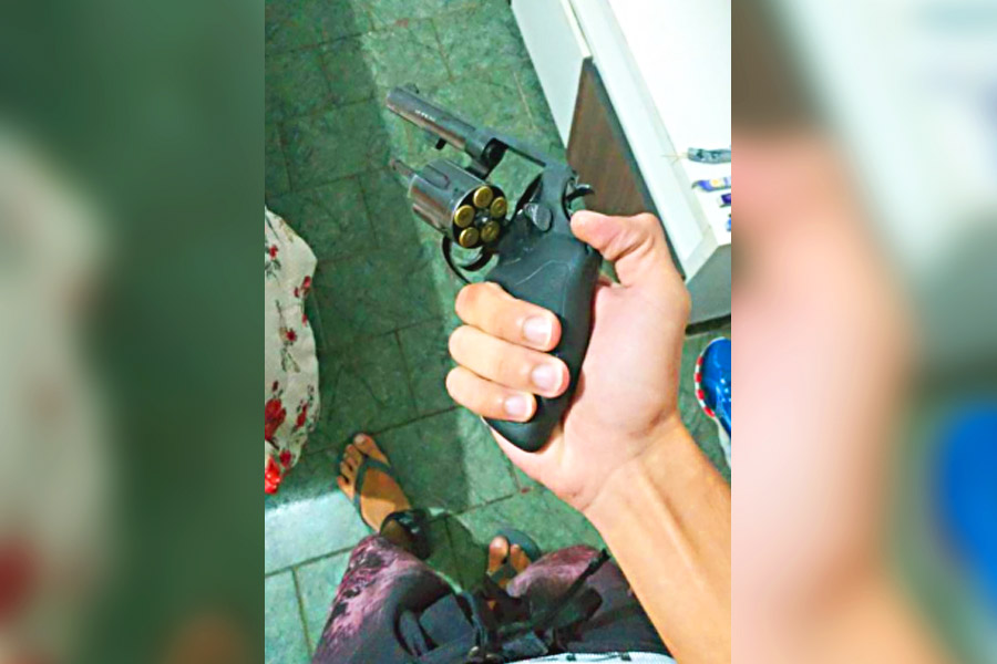 Segundo o denunciante, o suspeito andava armado e já teria feito disparos no local.