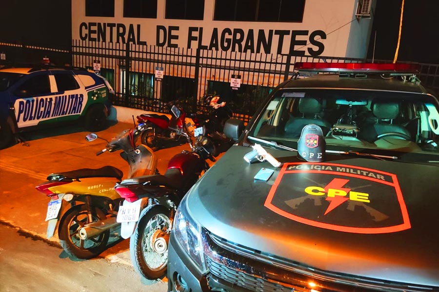 De acordo com a PM, com os suspeitos foram apreendidos 1 simulacro de arma de fogo, 1 motocicleta utilizada nas ações criminosas, 1 celular roubado e um veículo que havia sido roubado naquele mesmo dia.
