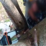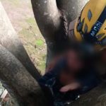 Ao perceber que o garoto ficou preso pela perna entre 2 galhos, a mãe teria tentado retirá-lo, mas não conseguiu.