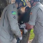 Bombeiros foram acionados pela mãe para retirar o menino, que teve ferimentos leves na perna.