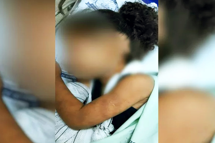 Com um braço quebrado e hematomas pelo corpo, a criança foi internada no Hospital de Urgências Governador Otávio Lages de Siqueira (Hugol).