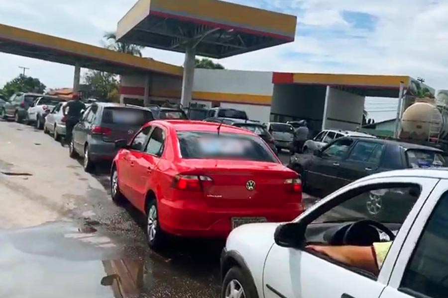 Vídeos gravados no local mostram uma longa fila de veículos adesivados à espera de abastecimento no posto, que fica no Village Garavelo.