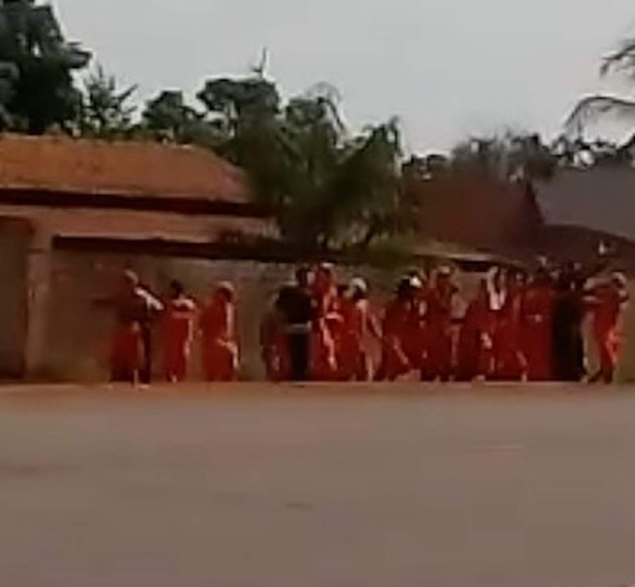 Imagens gravadas por moradores da região mostram o momento em que os detentos, trajando uniforme de presidiário, saem em bando com armas em punho e mantendo reféns.